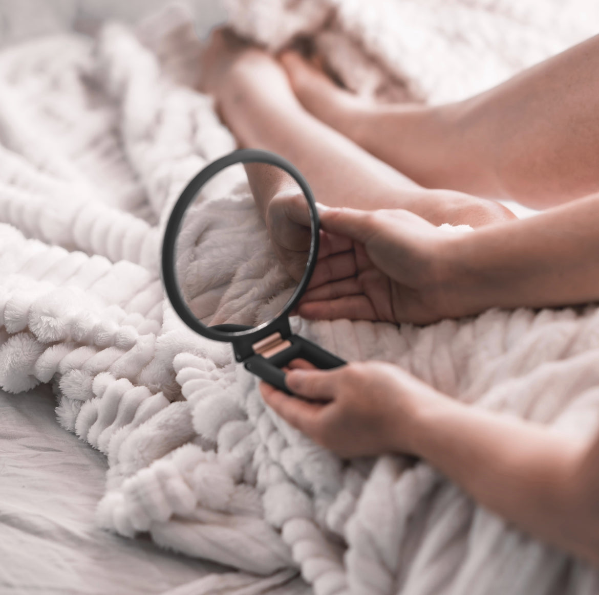 Use the Embody Vulva Mirror handsfree for ease of visualisation to make perineal massage easier and assist in pelvic floor connection (easy-to-use angling stand or option to hold).