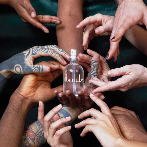 - Überlube comes in a beautiful clear glass bottle with a pump, allowing for ease of use during sexual activity
